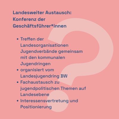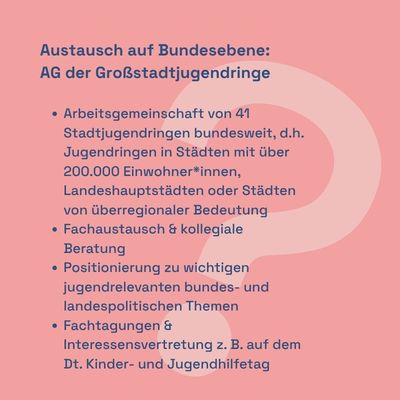➡️Überregional wird es in der AG der Großstadtjugendringe (mehr zu diesem Gremium findet ihr unter www.jugendringe.de).